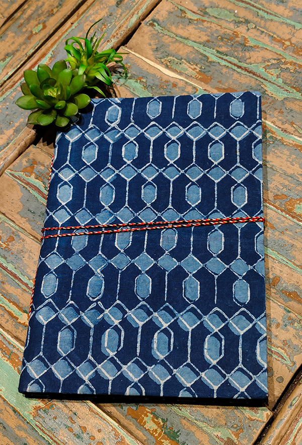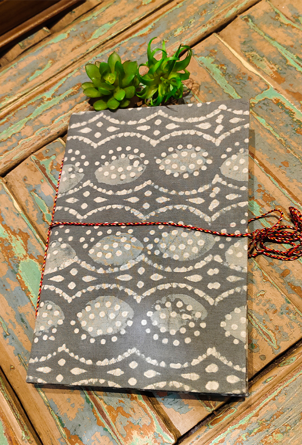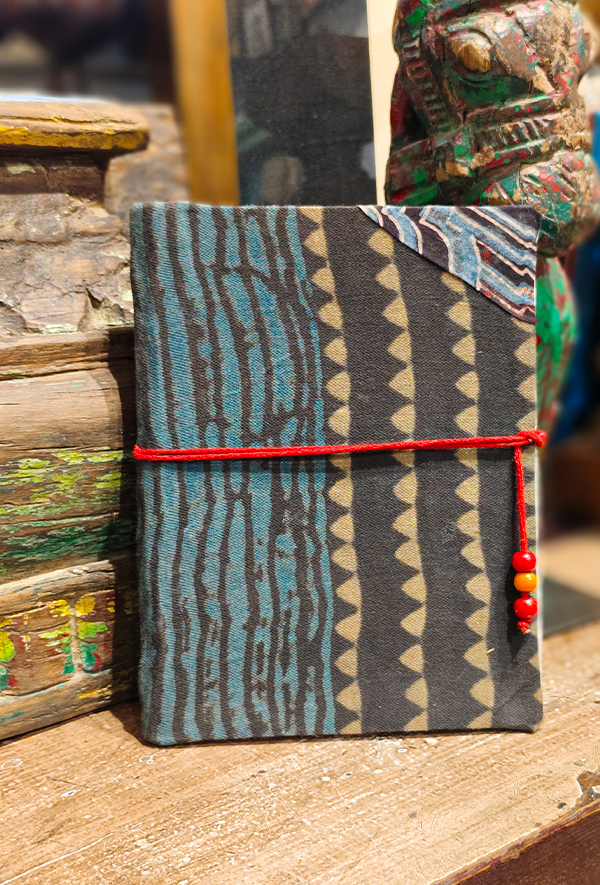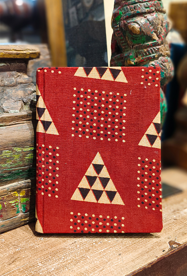 Fabric-bound notebook, secured with thread- Geometric Pattern
