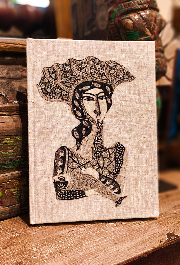 Fabric-bound Notebook- Hand-drawn Art Illustration