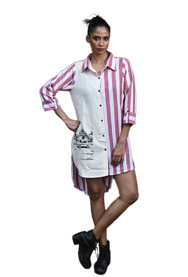 WOMAN HALF-AND-HALF STRIPPED SHIRT DRESS