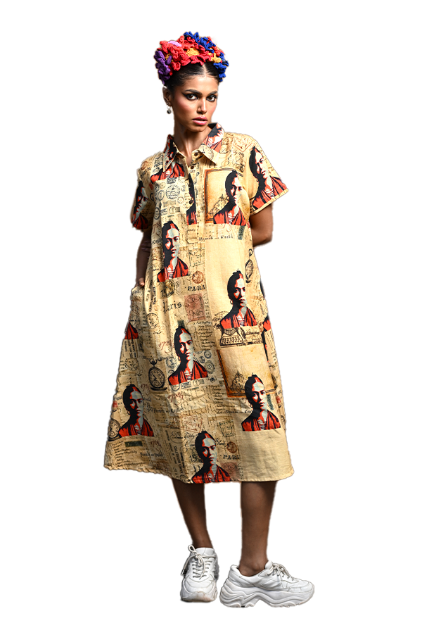 Vintage Camera Reverie Cowl Neck Dress (Cotton Dress)