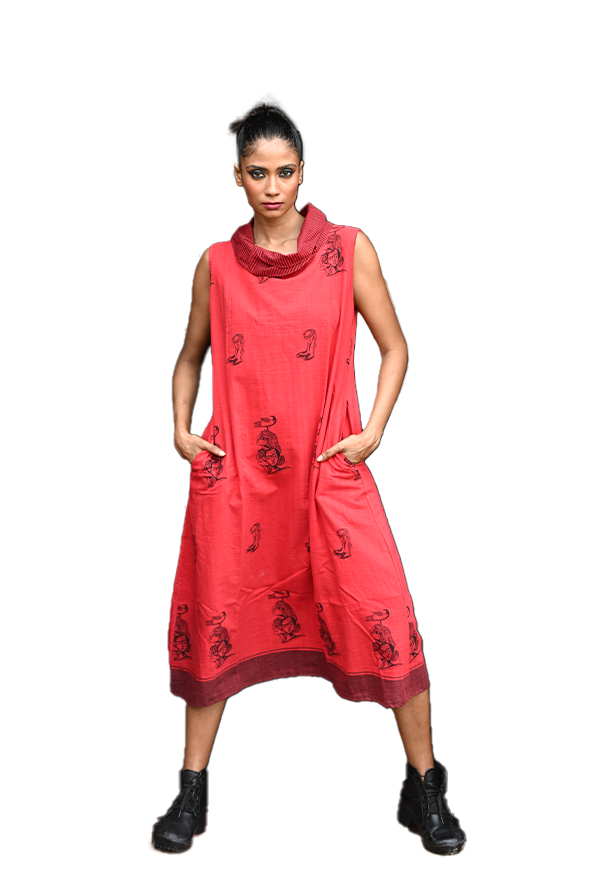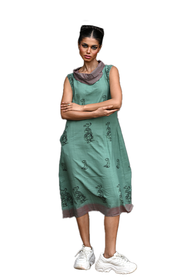 Vintage Tea-Kettle Print Cowl Dress (Cotton)