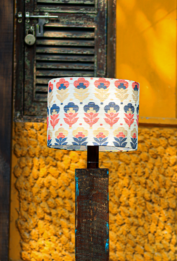 Delicate yet grounded — this lamp stands with quiet strength. The blooms printed on the drum shade repeat like a memory, rhythmic and soft. Below, the wooden base shows marks of time, texture, and craft. It doesn’t scream to be seen — it waits to be noticed. And once it is, it stays with you.